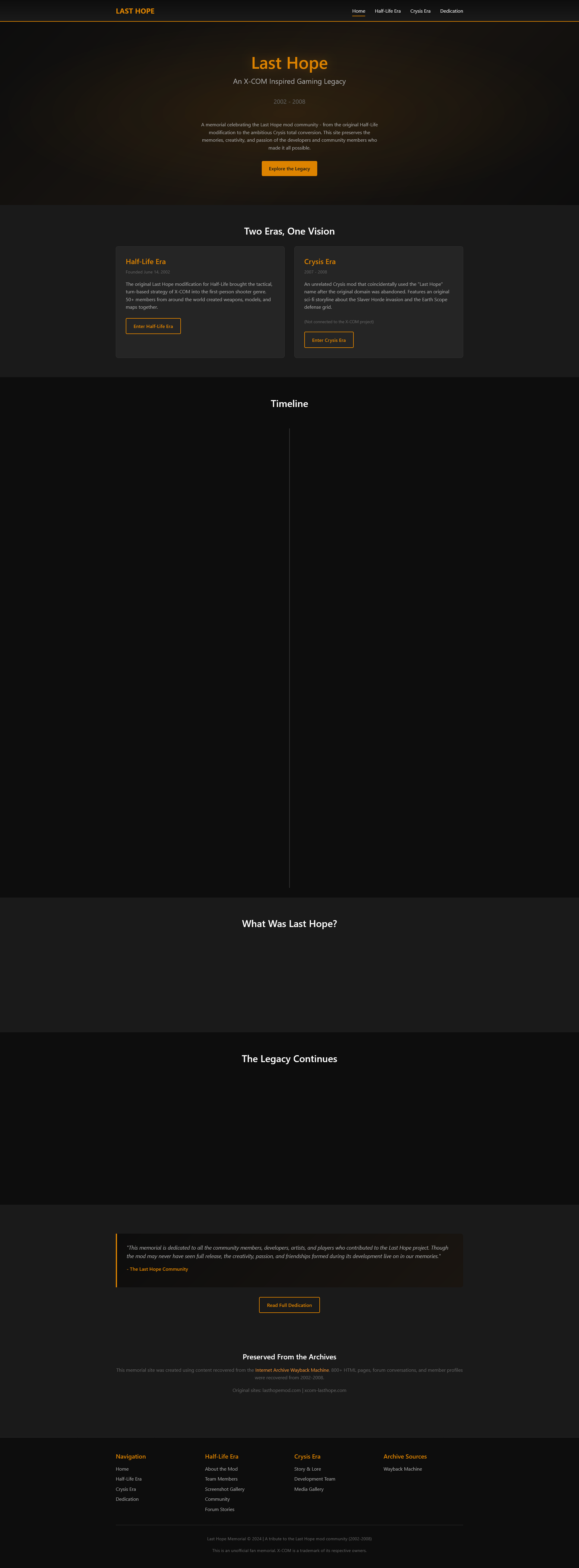 lasthope.digimente.xyzA memorial site for a Half Life 1 Mod based on the original X-COM Series, recovered through the Wayback Machine.